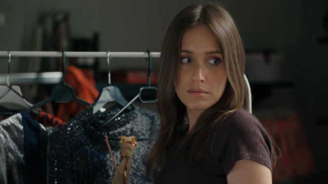 Aktorka Natalia Sierzputowska jako Madzia z serialu „Barwy szczęścia”, patrząca w prawo, z wieszakami na ubrania w tle. Zdjęcie ilustruje odcinek 3281, gdzie Madzia spłaca długi. Więcej o losach bohaterów przeczytasz na portalu Super Seriale.