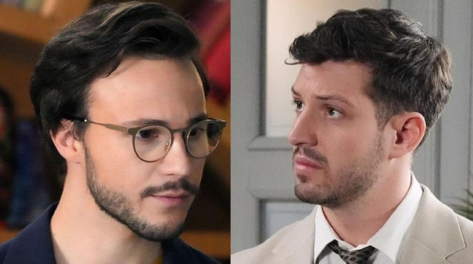 Kajtek (Jakub Dmochowski) i Justin (Jasper Sołtysiewicz) z serialu „Barwy szczęścia”, dwaj młodzi mężczyźni, jeden w okularach, drugi z profilu, w kadrze dzielonym na pół, podczas rozmowy. Więcej o ich losach na portalu Super Seriale.