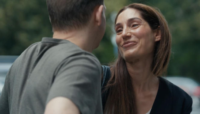 Uśmiechnięta Celina (Orina Krajewska) spogląda na Łukasza (Michał Rolnicki) w scenie z serialu „Barwy szczęścia”. Ich spojrzenia wyrażają dawną chemię. Więcej o ich relacji i zaginięciu Łukasza przeczytasz na portalu Super Seriale.