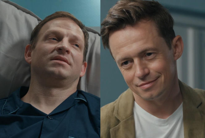Uwolniony Łukasz Sadowski, grany przez Michała Rolnickiego, w piżamie w szpitalnym łóżku rozmawia z Błażejem (Piotr Ligienza) z "Szoku". Modrzycki zaskoczy Łukasza swoim zachowaniem, nie wykorzystując jego dramatu w serialu "Barwy szczęścia", o czym przeczytasz na stronie Super Seriale.