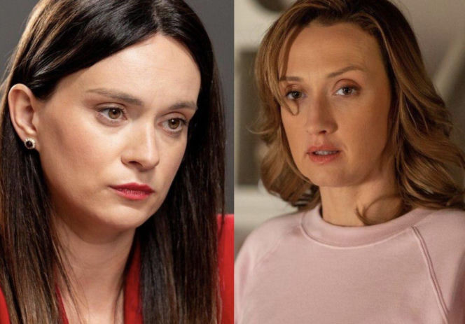 Ujęcie dwóch aktorek: Maria Dejmek jako Natalia i Anna Gzyra jako Asia, z serialu "Barwy szczęścia". Natalia w czerwonej marynarce, Asia w różowej bluzie, obie z poważnymi minami. To ważny moment w serialu "Barwy szczęścia", o którym przeczytasz więcej na Super Seriale.