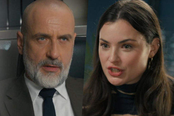 Kornel i Weronika w kadrze, z lewej łysy mężczyzna z siwą brodą w garniturze i krawacie, z prawej kobieta z długimi brązowymi włosami i otwartymi ustami, wyrażająca emocje. Konfrontacja bohaterów "Barw szczęścia", o której przeczytasz więcej na Super Seriale.