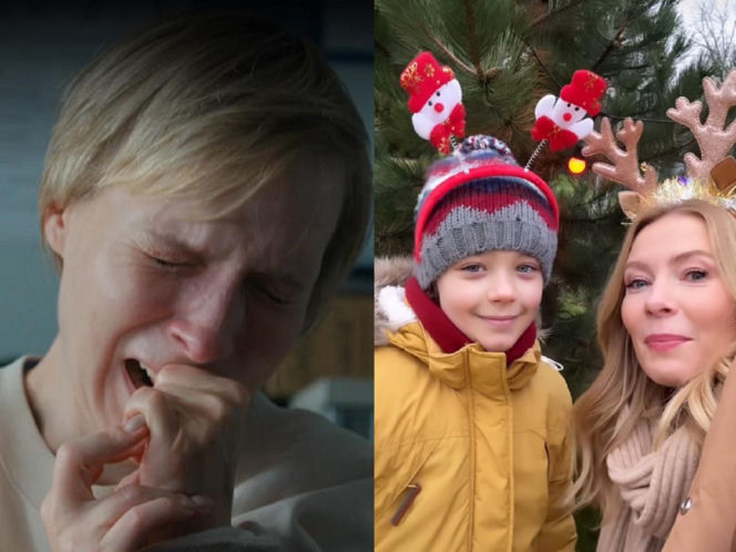 Dwa kadry z serialu "Barwy szczęścia": po lewej Sonia (Weronika Nockowska) płacze, trzymając dłoń przy ustach, po prawej uśmiechnięta Dominika (Karolina Chapko) w opasce z rogami renifera i Mateuszek (Filip Kowalewicz) w zimowej czapce na tle świątecznej choinki, o losach których przeczytasz na Super Seriale.