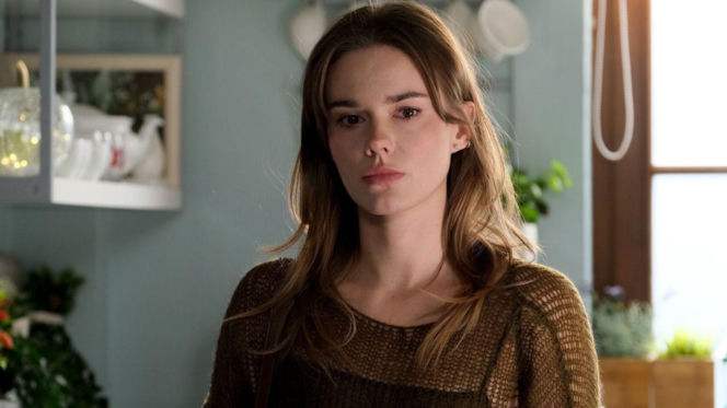 Portret Dominiki Kachlik, aktorki znanej z roli Franki w "M jak miłość", w brązowym swetrze. Wygląda na zamyśloną, z lekko rozpuszczonymi włosami, na tle jasnego wnętrza kuchni. Artykuł na Super Seriale informuje o powrocie jej postaci do serialu po śmierci.