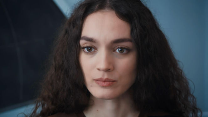 Kobieta z długimi, ciemnymi, kręconymi włosami i brązowymi oczami, o poważnym wyrazie twarzy, lekko uniesionych brwiach, z jasnoróżowymi ustami. Scena z serialu "Dziedzictwo", gdzie Nana odkrywa kłamstwo Yamana. Więcej o ich losach na Super Seriale.