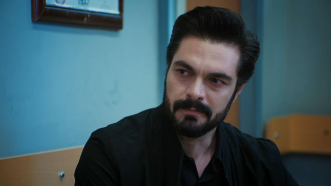 Yaman, bohater serialu "Dziedzictwo", na zdjęciu z bliska, z zamyślonym wyrazem twarzy i brodą, w czarnej koszuli. Tło jest lekko rozmyte, niebiesko-szare. O tym, jak Yaman dowie się o tym, że Ferit jest ojcem, przeczytasz na Super Seriale.