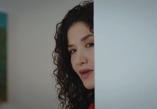 Portret Cansel z serialu "Dziedzictwo", częściowo ukrytej za ścianą, z intrygującym spojrzeniem sugerującym jej przebiegłe plany. Postać w artykule na Super Seriale jest kluczowa dla intrygi w odcinku 895, manipulując Naną i Yusufem dla majątku.