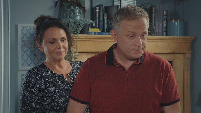 M jak miłość odc. 1765. Franka (Dominika Kachlik), Paweł (Rafał Mroczek), Barbara (Teresa Lipowska), Marysia (Małgorzata Pieńkowska), Artur Rogowski (Robert Moskwa)