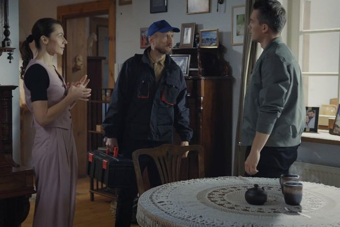 M jak miłość odc. 1847. Jakub Karski (Krzysztof Kwiatkowski), Martyna (Magdalena Turczeniewicz), technik (Karol Kopiec)