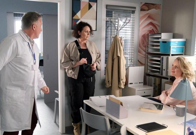 M jak miłość odc. 1816. Judyta (Paulina Chruściel), Marysia (Małgorzata Pieńkowska), Artur Rogowski (Robert Moskwa)