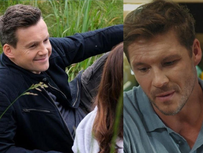 Krzysztof Kwiatkowski jako Jakub i Mikołaj Roznerski jako Marcin w serialu "M jak miłość". Jakub, uśmiechnięty, leży na trawie obok Martyny, a Marcin, zamyślony, spogląda w dół, co odzwierciedla zazdrość o szczęście Jakuba z Martyną. Więcej o ich losach na Super Seriale.