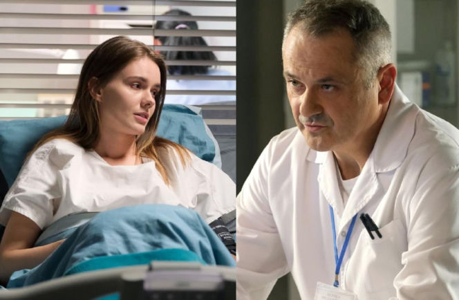 Aktorka Dominika Kachlik jako Franka w szpitalnym łóżku i Wojciech Billip jako kardiolog w białym kitlu, zaniepokojeni diagnozą. Ten dramatyczny moment z serialu "M jak miłość" to zapowiedź złych wieści, które czekają Frankę po operacji. Więcej informacji znajdziesz na Super Seriale.