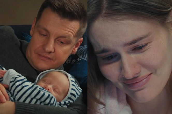 Paweł (Rafał Mroczek) trzymający śpiącego syna Antosia w koszulce w paski oraz Franka (Dominika Kachlik) ze smutną miną, co zapowiada jej wyjazd i tajemnicę przed mężem. Więcej o tym przeczytasz na portalu Super Seriale.