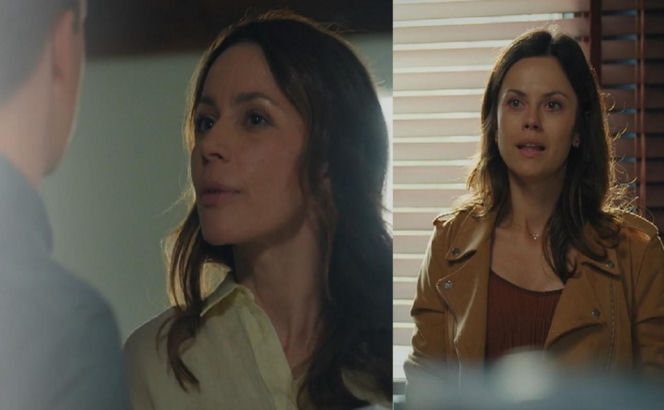 Martyna (Magdalena Turczeniewicz) w dwóch ujęciach: z boku i na wprost. Na lewym zdjęciu kobieta w jasnej koszuli patrzy w kierunku innej osoby, na prawym, w brązowej ramonesce, spogląda przed siebie z zatroskaną miną. Zdjęcia ilustrują emocje bohaterów, które można śledzić na portalu Super Seriale.