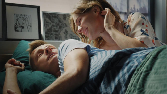 Uśmiechnięta Franka (Dominika Kachlik) pochyla się nad śpiącym Pawłem (Rafał Mroczek), delikatnie gładząc jego włosy, co jest częścią jego snu w 1908 odcinku "M jak miłość". Para leży w łóżku, a Franka ma na sobie wzorzystą koszulę. Więcej o tym na Super Seriale.