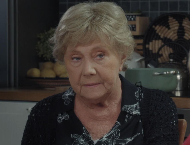 Barbara Mostowiakowa (Teresa Lipowska) z serialu "M jak miłość" z zamyśloną miną. Widoczny fragment kuchni z talerzem bułek. Fotografia oddaje przygnębienie postaci po śmierci Franki. Więcej o tym wątku przeczytasz na stronie Super Seriale.