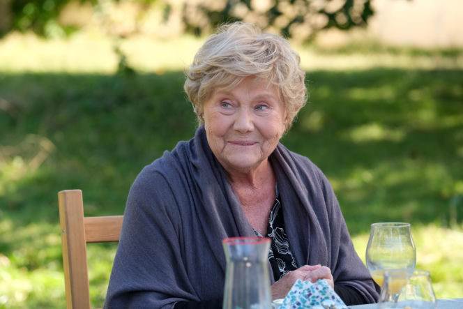 Uśmiechnięta Barbara (Teresa Lipowska) w szarym swetrze i bluzce w biało-czarne wzory siedzi przy stole w ogrodzie. Na stole widać dzbanek i szklanki. W tle rozmazana zieleń. Mostowiakowa odzyskuje humor w "M jak miłość". Więcej o serialu przeczytasz na stronie Super Seriale.