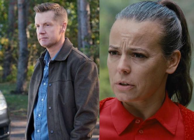 Rafał Mroczek jako Paweł Zduński i Anna Mucha jako Magda Budzyńska w serialu "M jak miłość". Paweł, ubrany w koszulę i kurtkę, stoi w lesie, Magda z zaciśniętymi ustami ma włosy spięte w kucyk. Więcej o ich losach w "Super Seriale".