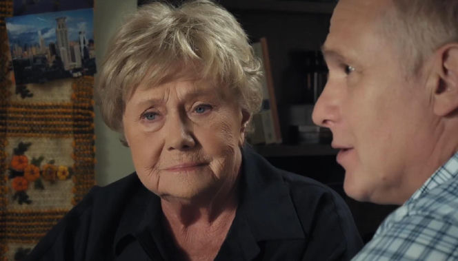 Barbara (Teresa Lipowska) z zasmuconym wyrazem twarzy i Robert Moskwa jako Artur Rogowski, zięć Barbary, obok, w scenie z serialu "M jak miłość". Zdjęcie ilustruje relacje rodzinne i potencjalną zdradę, o czym można przeczytać na portalu Super Seriale.