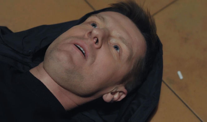 Mężczyzna, Paweł (Rafał Mroczek), leży na ziemi z otwartymi ustami, patrząc w górę, ubrany w ciemną bluzę lub kurtkę z kapturem. Wyraża głęboki ból i bezsilność po stracie Franki. Obok niego na podłodze leży biała tabletka. Więcej o losach Pawła przeczytasz na portalu Super Seriale.