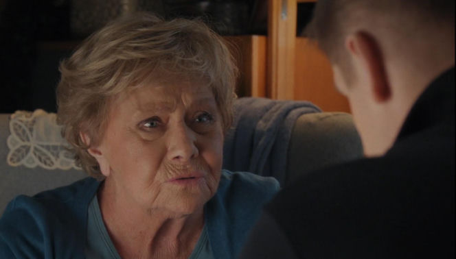 Barbara Mostowiak z serialu "M jak miłość" rozmawia z Pawłem, patrząc mu w oczy. Babcia Barbary wyzna Pawłowi, jak cierpiała po odejściu Lucjana, wspierając go w walce z depresją, o czym przeczytasz na Super Seriale.