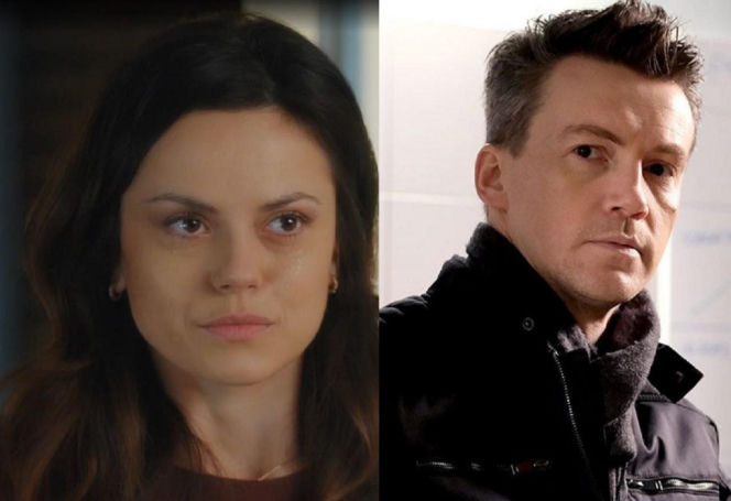 Zbliżenie na Kasię (Paulina Lasota) z serialu "M jak miłość" ze łzami w oczach oraz Jakuba (Krzysztof Kwiatkowski) z poważną miną. To kadry, które ilustrują wstrząsające wydarzenia i emocjonalny finał spotkania bohaterów, o czym więcej przeczytasz na Super Seriale.