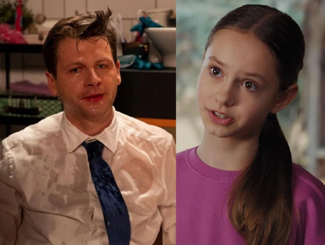 Patryk Szwichtenberg jako Adam Karski, cały mokry po akcji z pierścionkiem zaręczynowym oraz Wiktoria Basik jako Hania, wyrażająca skruchę. Scena z serialu "M jak miłość" ilustruje kłopoty przed oświadczynami. Więcej informacji o serialu znajdziesz na Super Seriale.