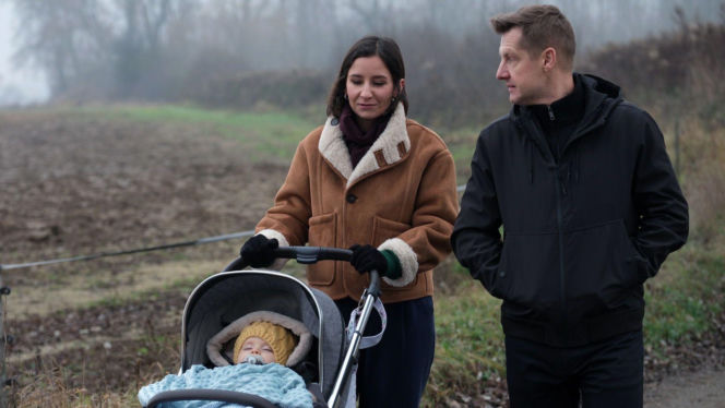 Agnes i Paweł spacerują z Antosiem w wózku, po bolesnym wyznaniu Agnes, która kocha syna Pawła jak własne dziecko. Widzimy ich na zewnątrz, w tle zamglony krajobraz. Więcej o ich losach przeczytasz na Super Seriale.