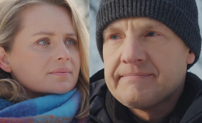 Zbliżenie na Judytę (Paulina Chruściel) i Pawła (Rafał Mroczek) z "M jak miłość". Judyta, z długimi blond włosami i w szaliku, patrzy w górę, a Paweł w ciemnej czapce i kurtce spogląda z powagą. Ta przełomowa rozmowa o przyszłości Antosia to jeden z wątków serialu Super Seriale.