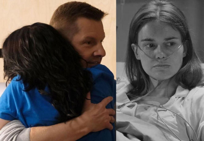 Paweł Zduński (Rafał Mroczek) w objęciach kobiety oraz czarno-białe zdjęcie Franki (Dominika Kachlik) z "M jak miłość" w szpitalu, z cewnikiem tlenowym w nosie. Te i inne wątki serialowe znajdziesz na stronie Super Seriale.