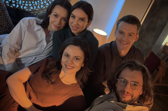 Aktorzy z "M jak miłość": Paulina Lasota (Kasia), Magdalena Turczeniewicz (Martyna), Krzysztof Kwiatkowski (Jakub) i Mateusz Mosiewicz (Mariusz) pozujący razem, uśmiechnięci. Fotografia przedstawia kluczowe postacie, których losy zacieśnią się w kolejnych odcinkach serialu. Więcej o ich wspólnych perypetiach przeczytasz na Super Seriale.