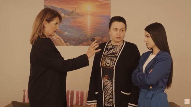 Feraye pokazuje nagranie Bahar i Cavidan, co ma doprowadzić do wycofania oskarżeń w 360 odcinku serialu „Miłość i nadzieja”. Scena pełna napięcia, obrazująca kluczowy moment dla fabuły, dostępna na Super Seriale.