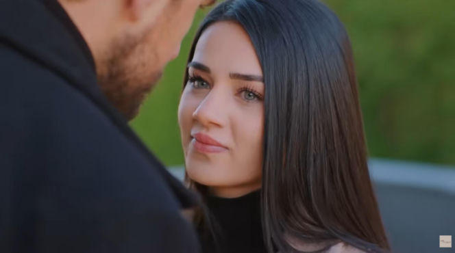 Bahar, zadowolona z siebie, spogląda na zdenerwowanego Kuzeya, któremu odmawia rozwodu po porwaniu Feraye. Jej uśmiech i wyraz twarzy ukazują pewność siebie, podczas gdy mężczyzna wydaje się wzburzony. Ta emocjonująca scena z serialu "Miłość i nadzieja" jest dostępna na Super Seriale.