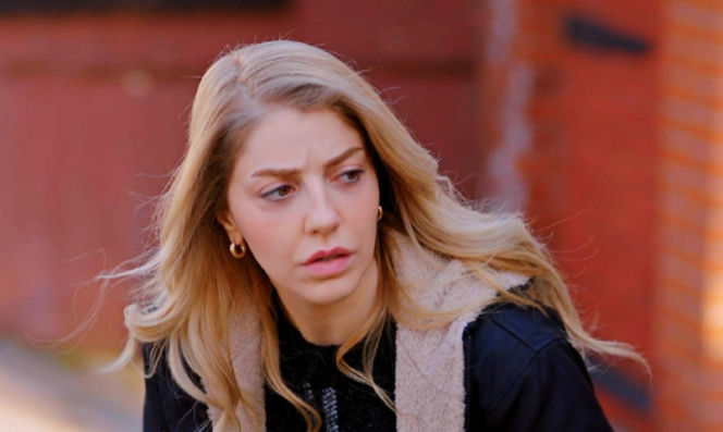 Melis z kręconymi włosami i Seda z blond włosami w serialu "Miłość i nadzieja". Melis jest zmartwiona, a Seda patrzy na nią, sugerując sprytny plan. Więcej o ich losach w kolejnych odcinkach na Super Seriale.