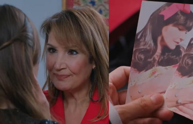 Scena z tureckiego serialu "Miłość i nadzieja" przedstawiająca Feraye w czerwonej marynarce, z czarnymi kolczykami, patrzącą na drugą kobietę, obok dłoń trzymająca dwie części starego zdjęcia młodej kobiety z ciemnymi włosami i czerwoną kokardą. Więcej o wątkach Super Seriale znajdziesz na naszym portalu.