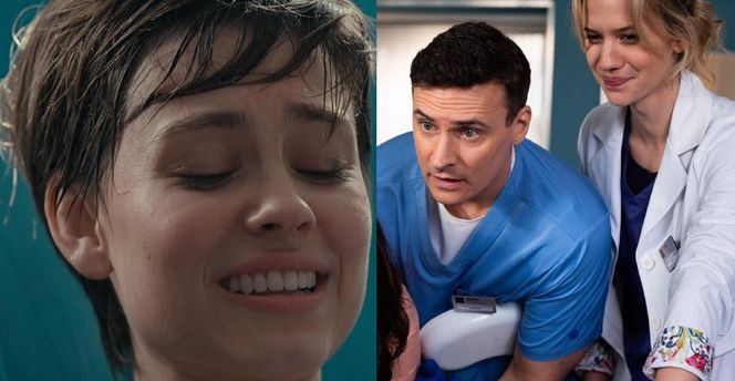 Na dobre i na złe odc. 958. Krzysztof Radwan (Mateusz Damięcki), Gloria (Aleksandra Grabowska), pielęgniarka Beata (Maria Góralczyk)