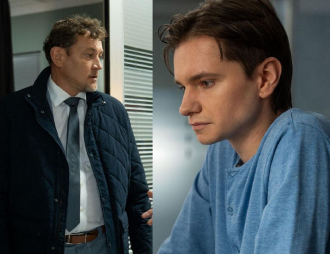 Dwa kadry z serialu "Na dobre i na złe". Po lewej Franciszek Kępiński (Paweł Ławrynowicz) w ciemnej kurtce i krawacie, z zaniepokojoną miną. Po prawej Drago (Piotr Gadomski) w szpitalnej koszuli, patrzący w dół. Zdjęcie ilustruje odcinek 979, gdzie Drago pogrąży burmistrza. Więcej informacji na Super Seriale.