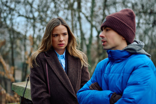 Kobieta z długimi włosami i mężczyzna w czapce rozmawiają na zewnątrz, przedstawiając scenę z 4162. odcinka "Na Wspólnej", gdzie Kalina prosi o pomoc byłą partnerkę. Więcej informacji o serialu "Na Wspólnej" znajdziesz na stronie Super Seriale.