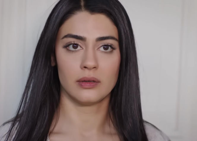 Kobieta z rudymi włosami o imieniu Yonca trzyma w ręku test ciążowy z dwoma kreskami, wyrażając zaskoczenie lub szok na twarzy. To kluczowy moment z serialu „Panna młoda”, który zapowiada emocjonujące wydarzenia, o których można przeczytać na Super Seriale.
