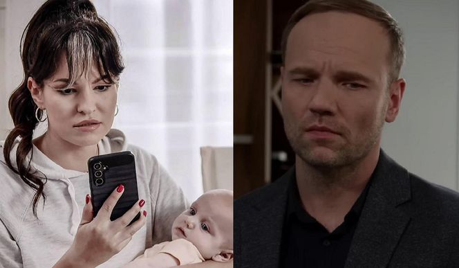 Pierwsza miłość odc. 4031. Lilka (Sylwia Sokołowska), Janek (Maciej Mikołajczyk), ich córka Pola