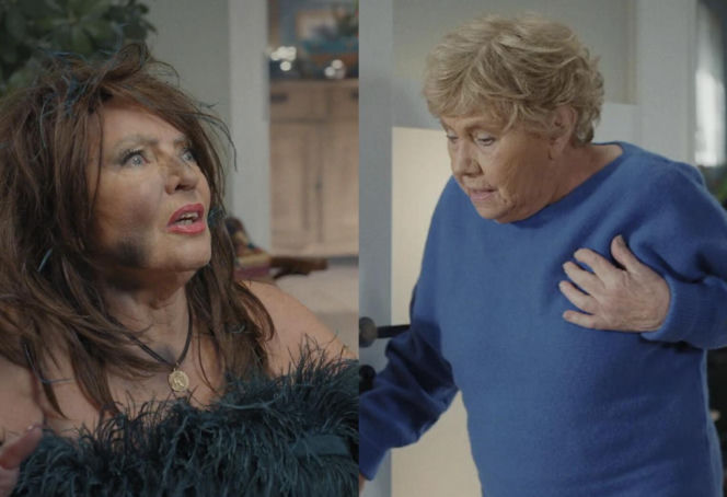 Kolaż przedstawiający Simonę (Agnieszka Fikau-Perepeczko) z brudną od sadzy twarzą i włosami w opierzeniu oraz Barbarę Mostowiak (Teresa Lipowska) w niebieskim swetrze, trzymającą dłoń na piersi, w tle pomieszczenie mieszkalne. Obie kobiety są zaskoczone i zaniepokojone, Simona po pożarze w domu Mostowiaków. Więcej o ich losach dowiesz się na Super Seriale.