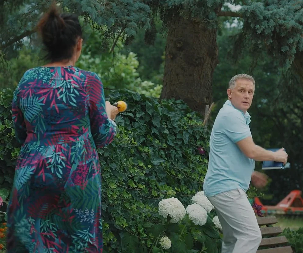 - O nie poznaję tutaj koleżanki! Marysiu, żeby własną córkę szlaufem? - zaśmieje się Artur, gdy nastolatkowie uciekną.