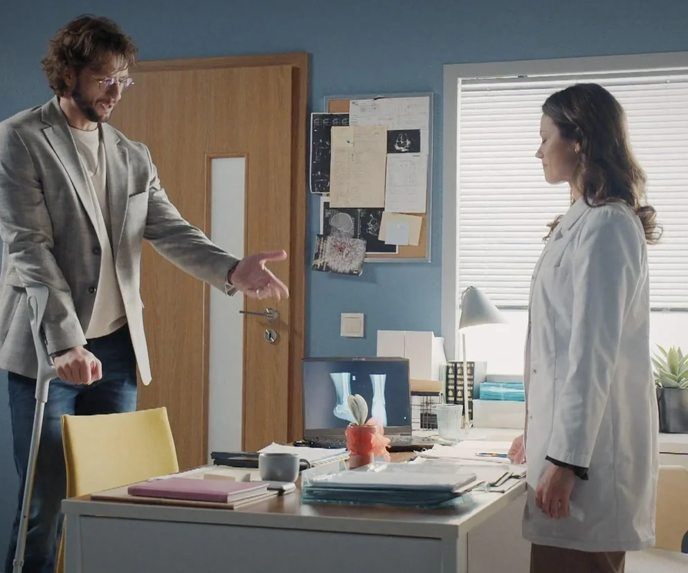Niemal na wejściu architekt wręczy lekarce upominek. Mężczyzna zrobi wszystko, byle przykuć uwagę lekarki.