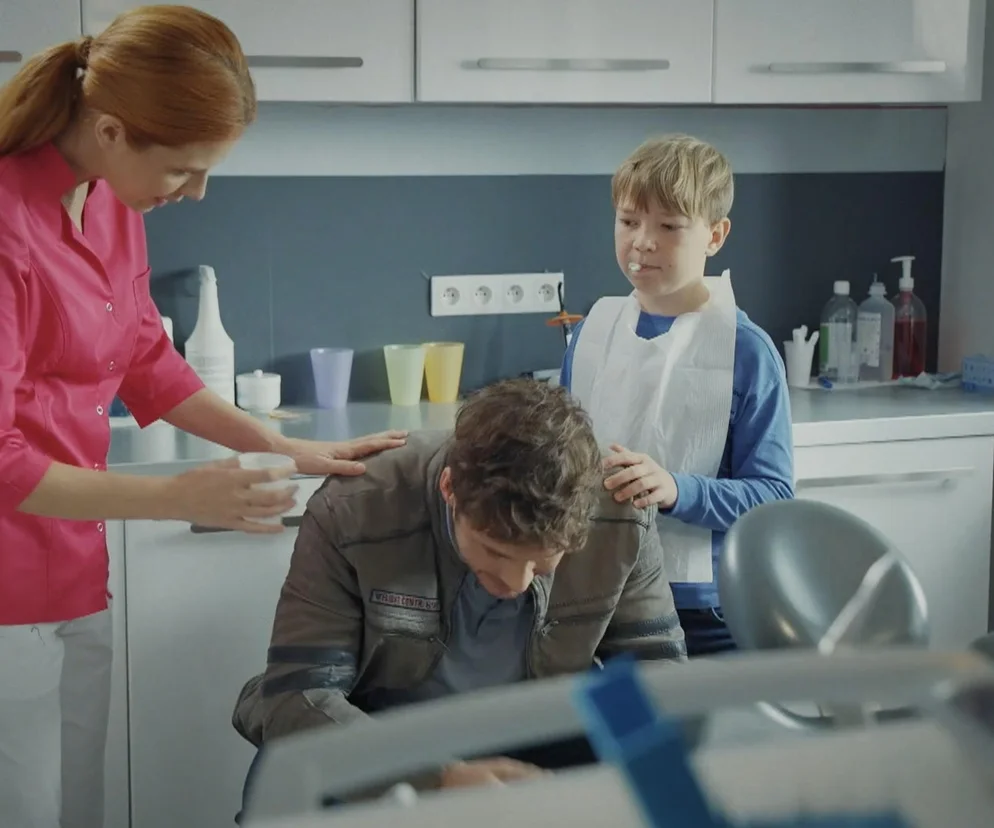 Marcin pójdzie z synem na wizytę do gabinetu dentystycznego, gdzie na fotelu pacjenta siądzie mały Szymek. Chociaż to nie Marcin będzie przechodził przegląd, zestresuje się jak nigdy. Sytuacja nabierze niebezpiecznego obrotu, kiedy dentystka zdecyduje o usunięciu mleczaka u chłopca. Z uwagą spojrzy na tatę Szymka, który momentalnie poblednie.