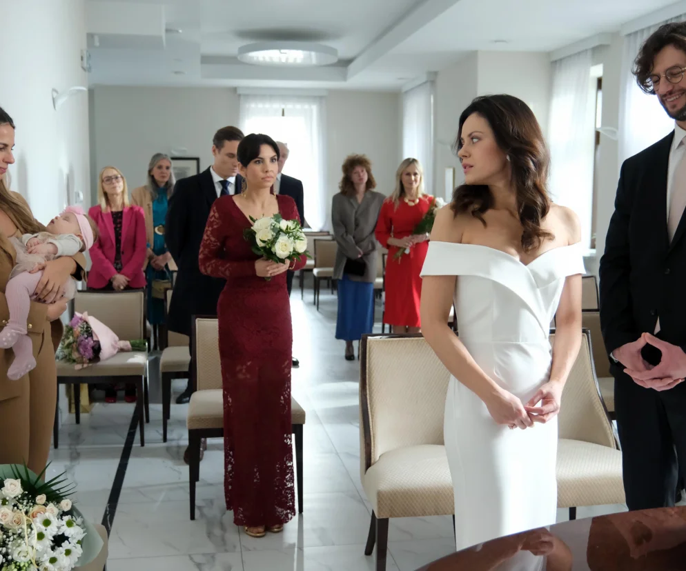 Kasia zdecyduje się na dopasowaną, prostą suknię ślubną w odcieniu bieli. Mariusz zaprezentuje się w garniturze, a jego radość będzie widoczna gołym okiem. Już wiadomo, że nic ani nikt nie przerwie ceremonii. Państwo młodzi złożą przysięgę i podpisy na papierach, a potem pocałują się przed USC wśród zgromadzonych. Posypią się gratulacje i uściski. Jakub nie przerwie ślubu byłej żony, nie odegra sceny zazdrosnego byłego męża, który próbuje odwieść Kasię od bycia żoną Mariusza. Nic takiego nie będzie miało miejsca, a Kasia zostanie żoną Sanockiego.