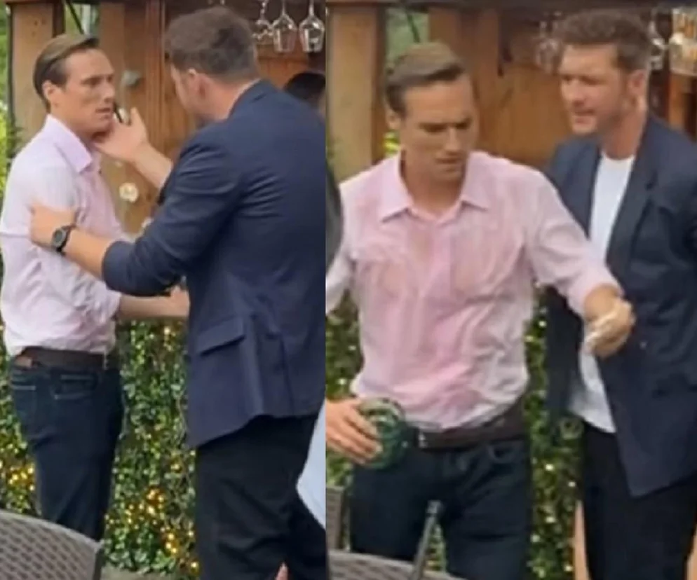 Na krótkim filmiku nie słuchać, co mówią Chodakowscy, ale wygląda to tak, jakby Marcin próbował młodszego brata. Złapie go za ramię, poklepie po policzku i wtedy Olek się wyrwie ze wściekłością wypisaną na twarzy. Obleje się też drinkiem, który będzie trzymał w ręku.