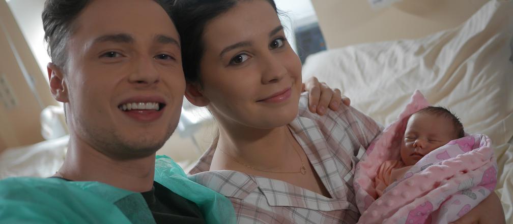 Gdy przyszłej mamie odejdą wody przerażony Krystian zawiezie ją do szpitala. Przez cały czas będzie przy ukochanej na sali porodowej. Trzymając Kalinę za rękę będzie podtrzymywał ją na duchu i dodawał sił. Po wielu godzinach na świat przyjdzie córka Kaliny i Krystiana.